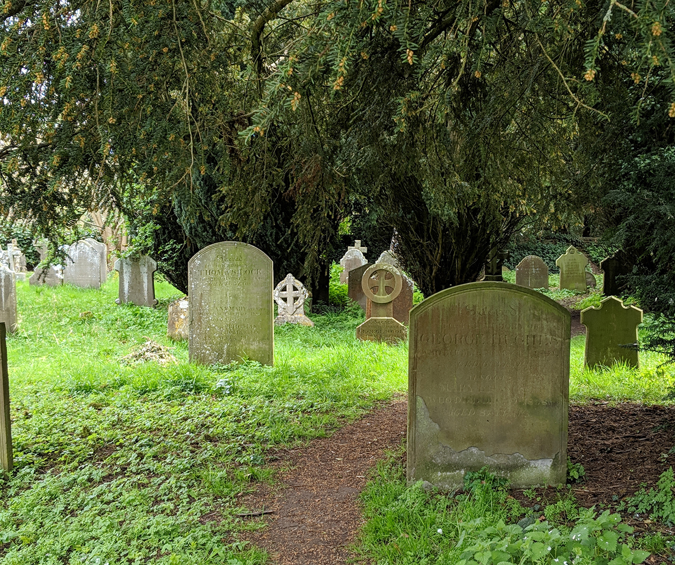 Right behind the Church of St. John the Baptist is a historic churchyard where visitors are welcome to carefully walk the winding path between graves and markers of centuries old townsmen and priests.