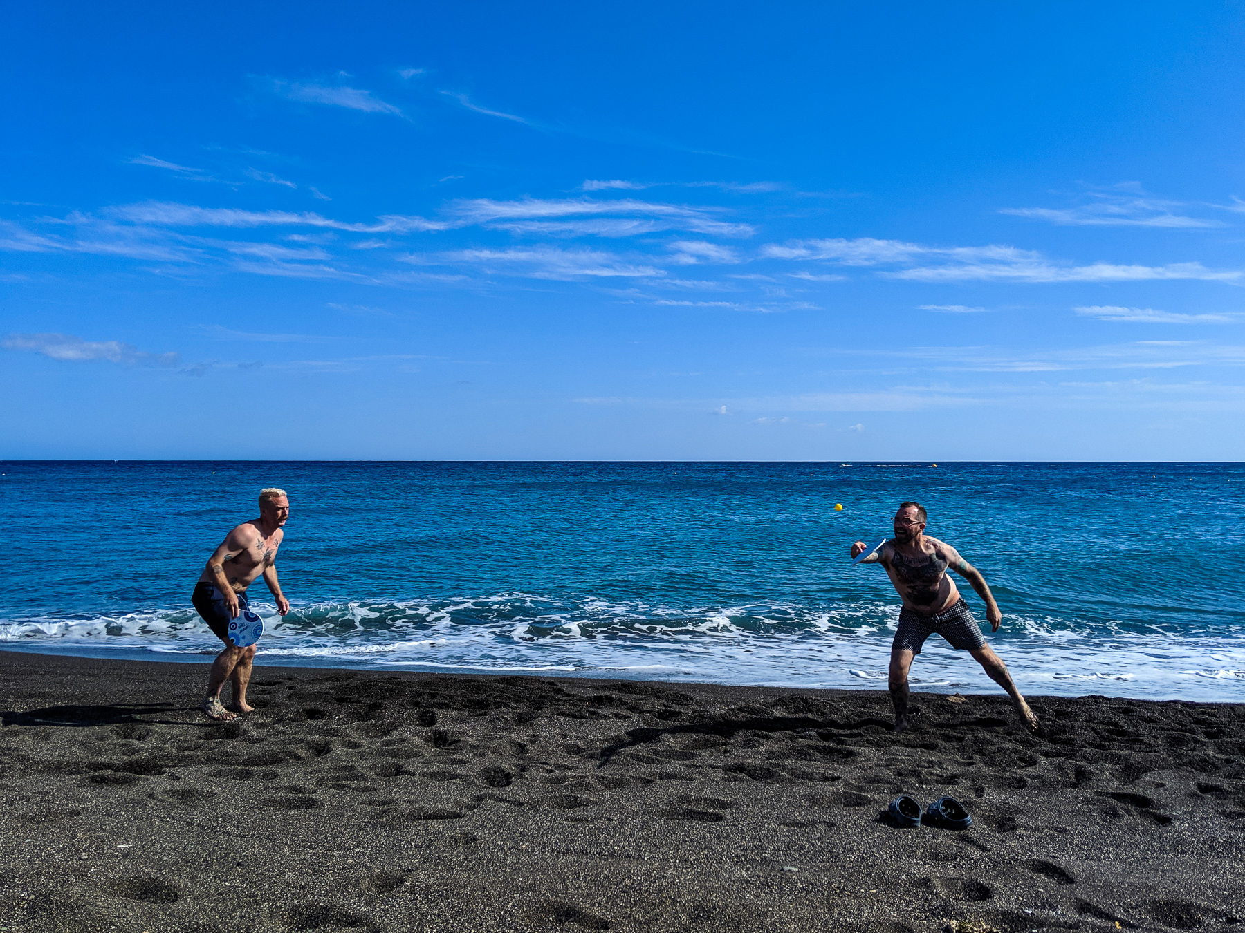 Plus, the folks from the restaurants up the hill happily bring beers to our chaise lounges. The boys played paddle ball on the beach, I read my magazine for hours.