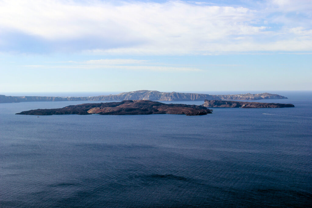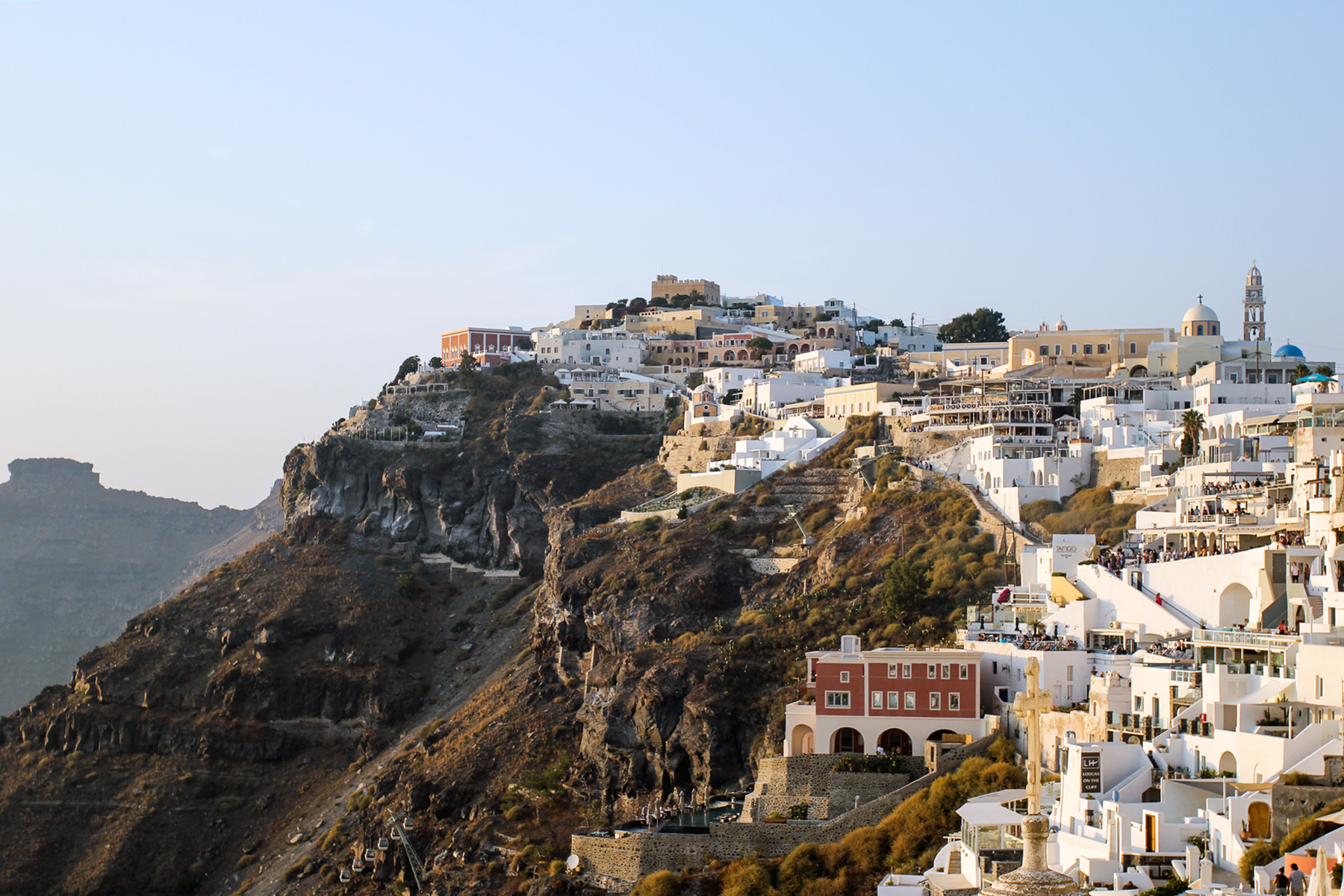 It’s hard not to fall in love with the beautiful sunset over the islands and the town of Fira lighting up blue, white and gold at dusk.