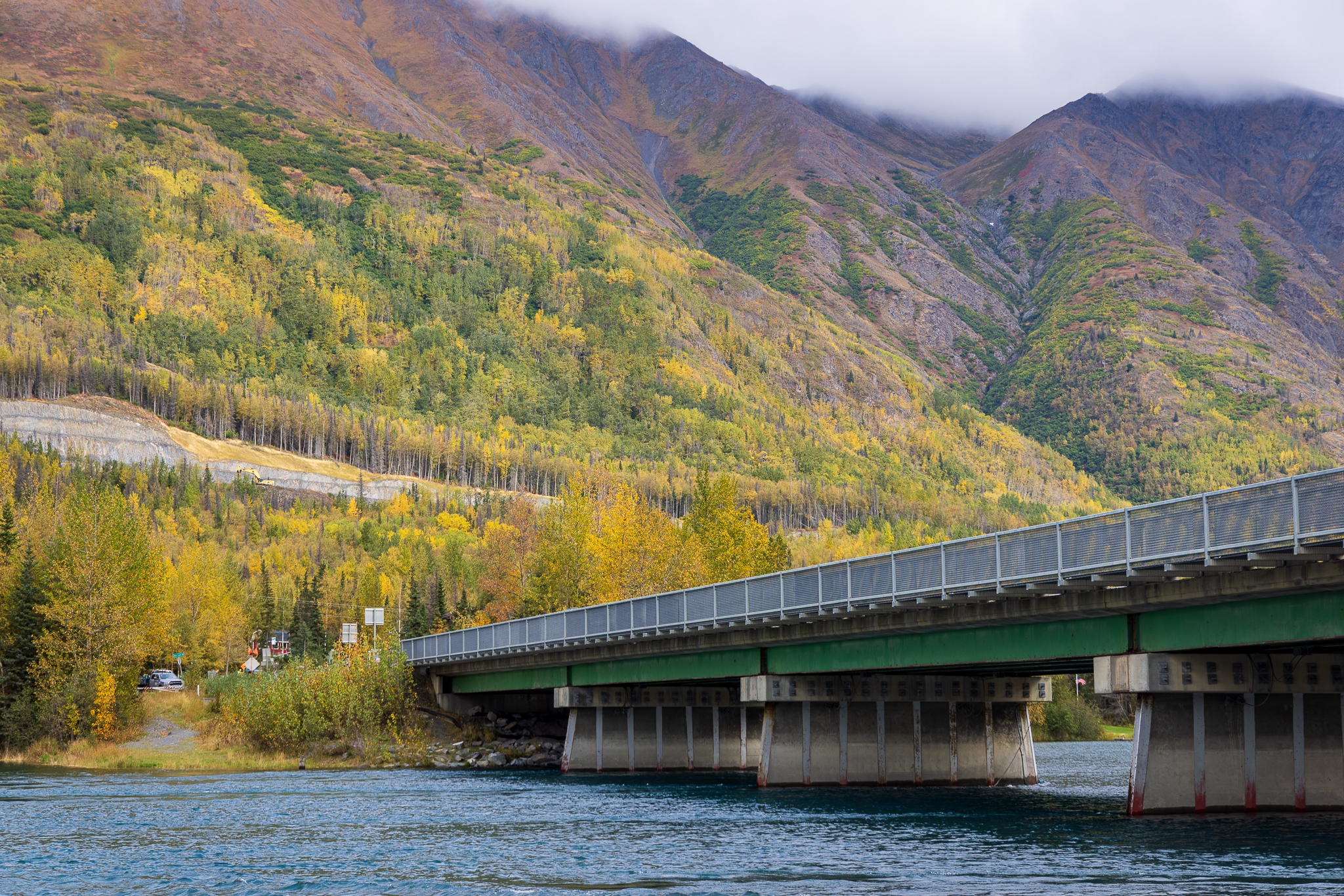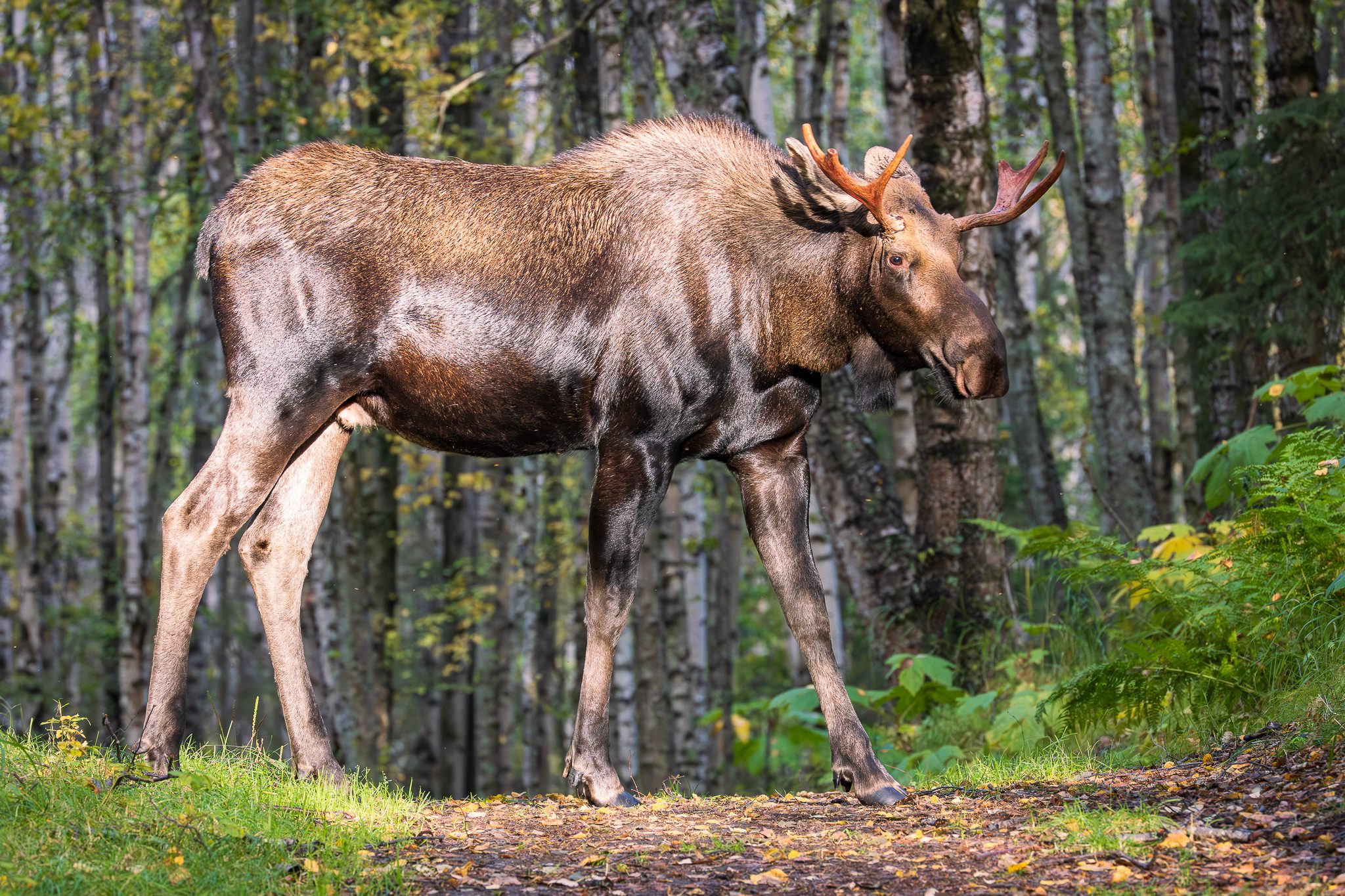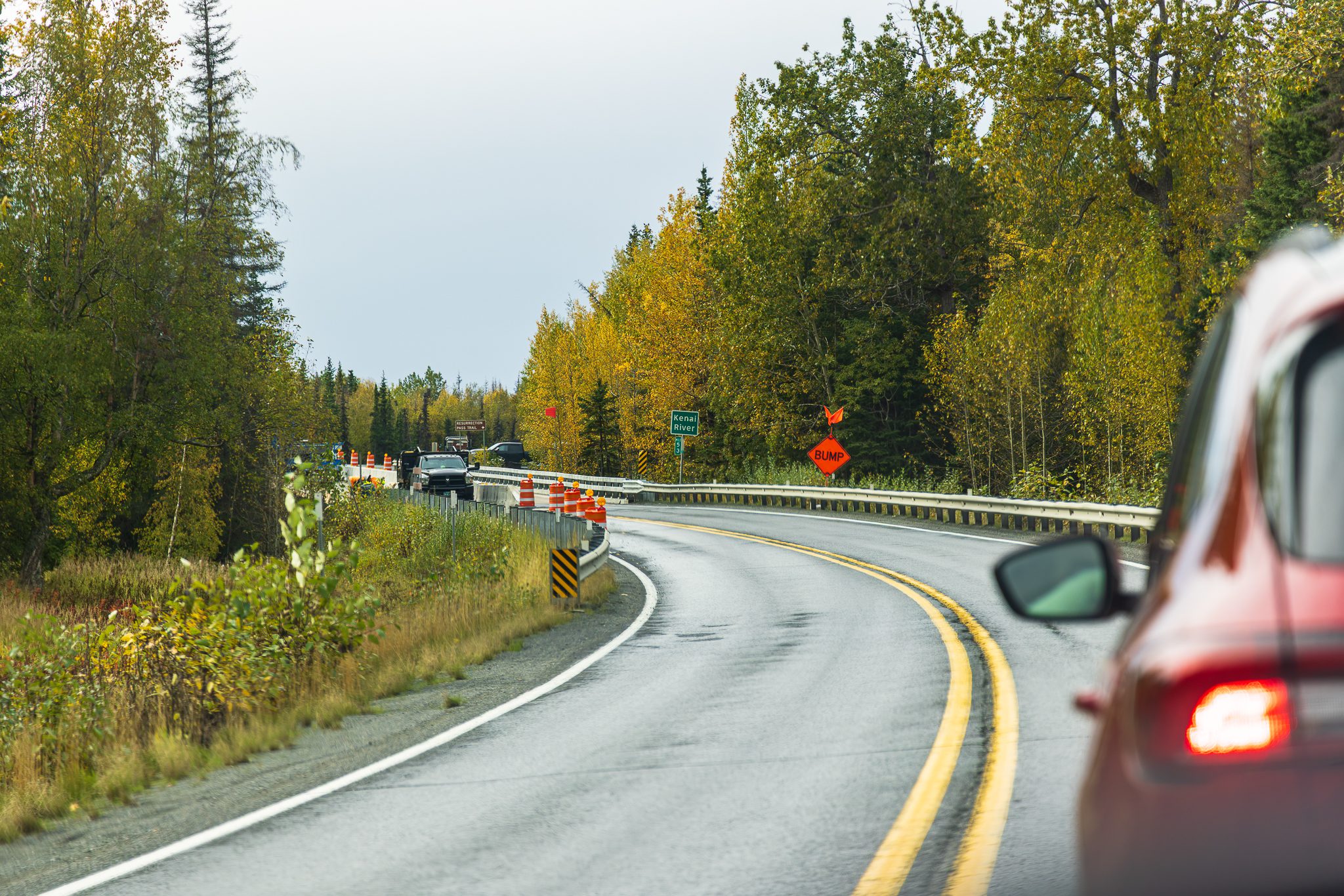 It’s an overcast day typical of autumn on the Kenai Peninsula with dense spruce-birch forest and mountain slopes framing my view as I wind around the curves of the Sterling Highway near the small river town of Cooper Landing. Rain drizzled intermittently on the windshield, and the green mile markers inched up—47, 48, 49—along a stretch of highway identified as one of the area’s most dangerous for wildlife-vehicle collisions.